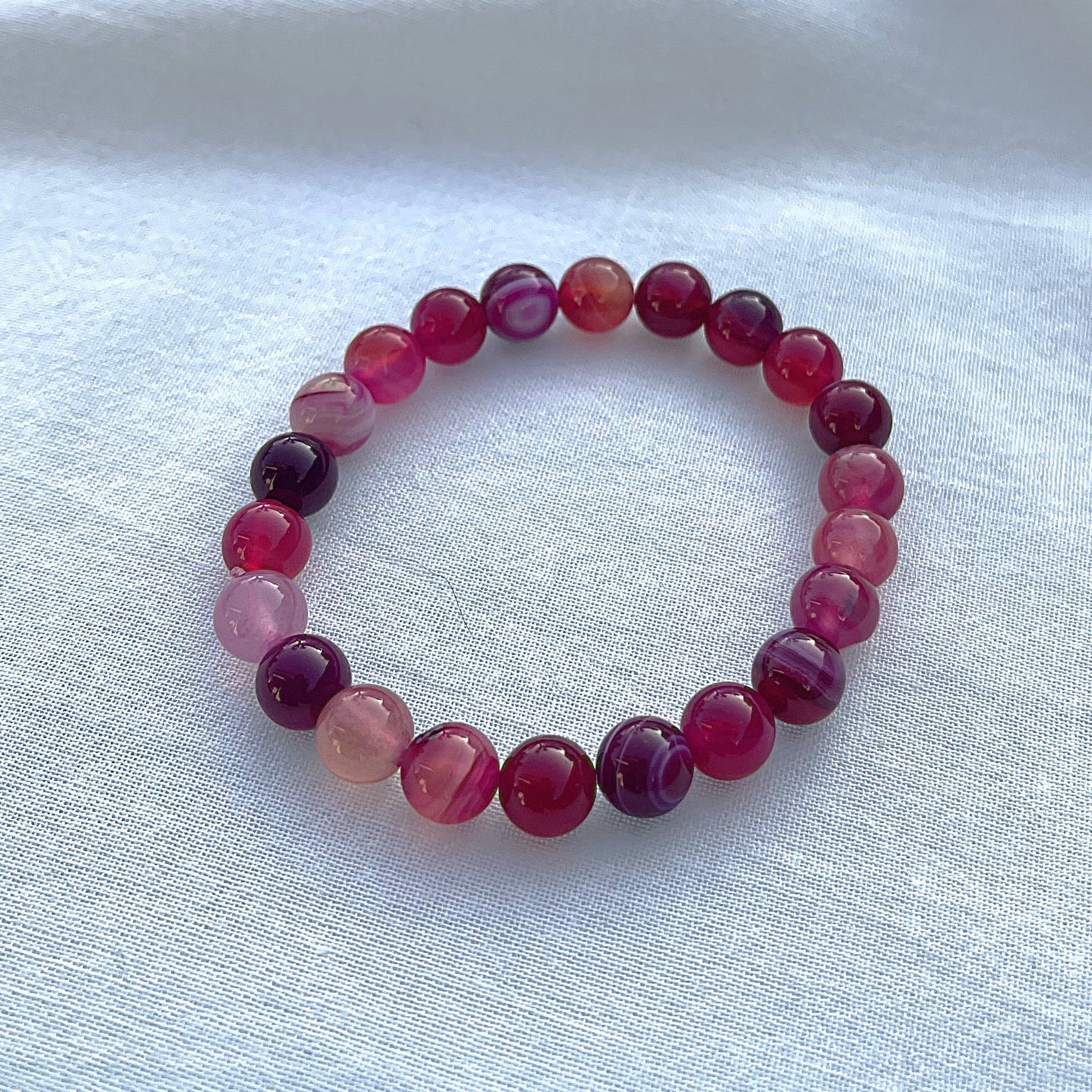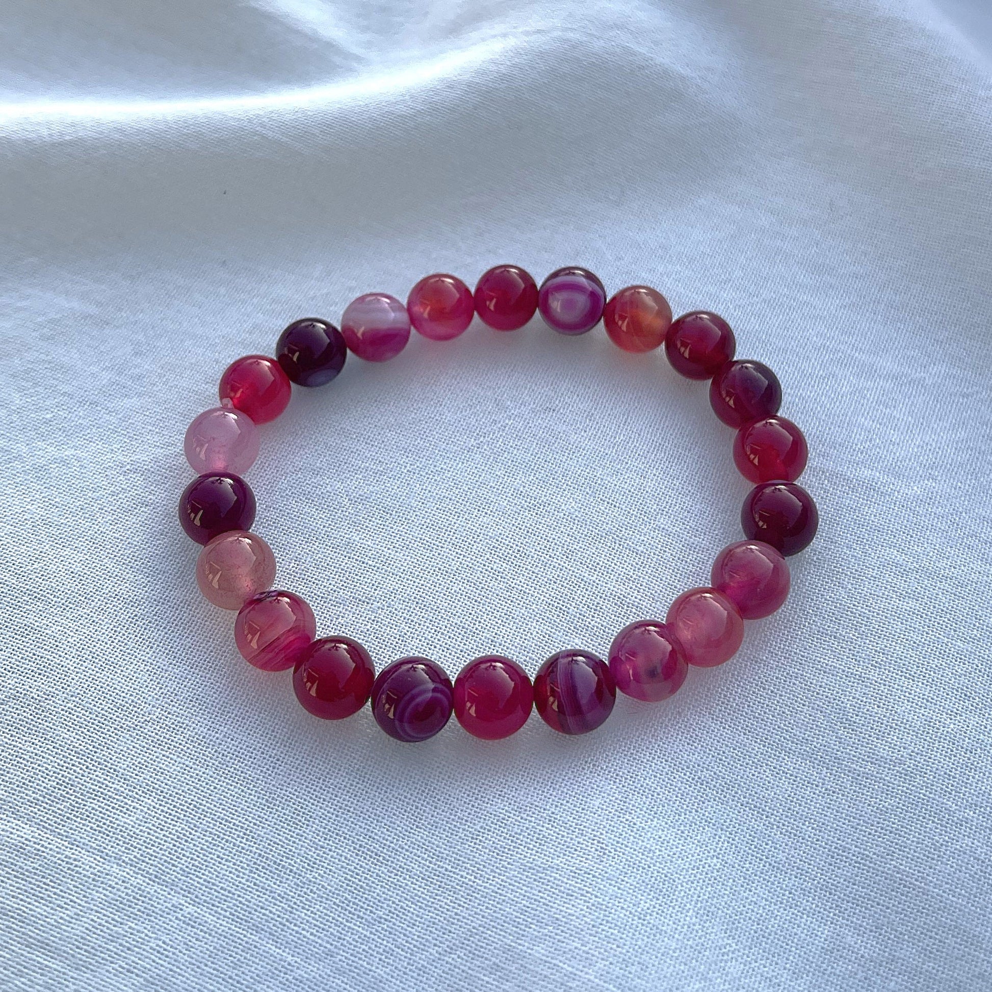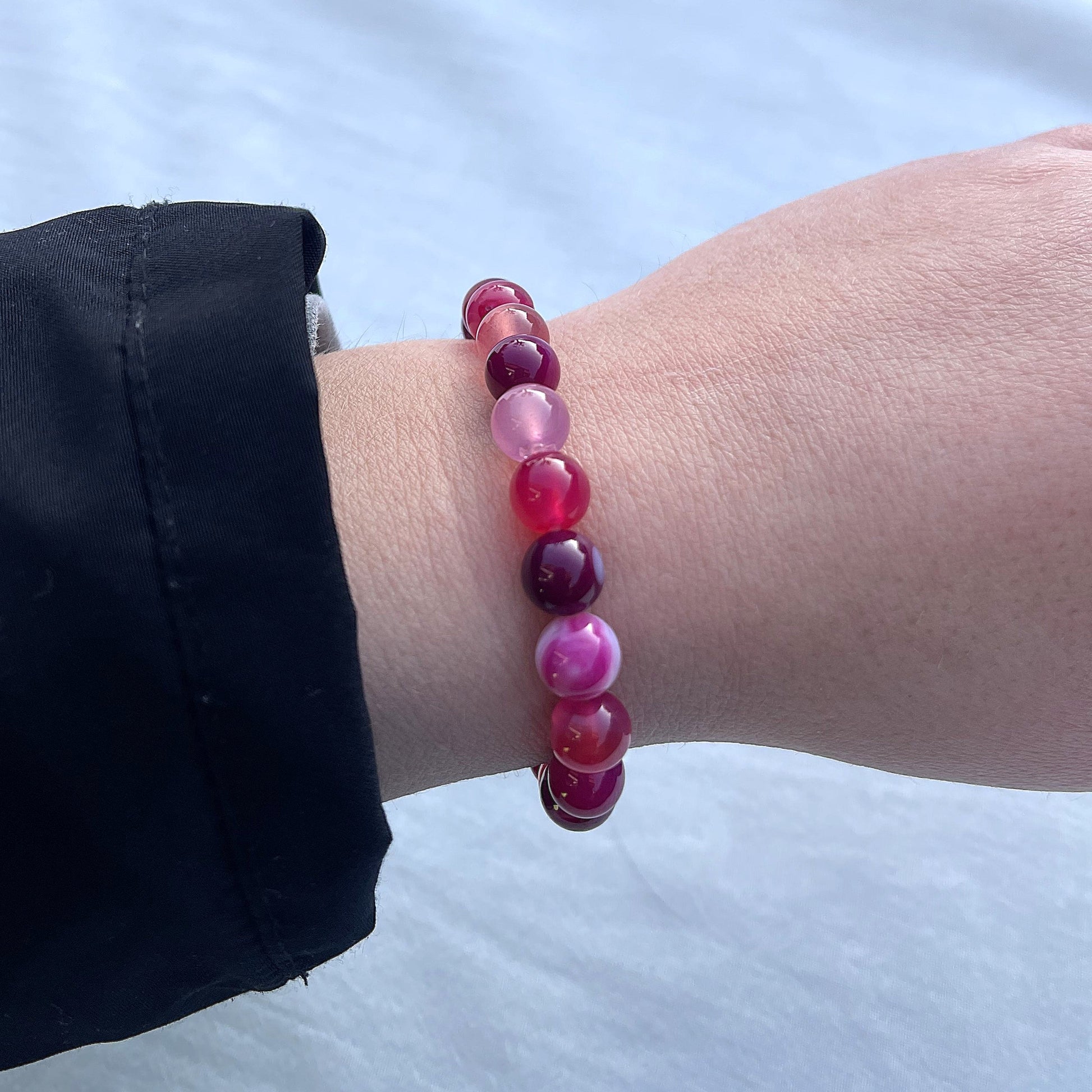 Dieses Armband aus pinkem Achat begleitet dich sanft durch den Alltag und unterstützt Schutz, Stabilität und emotionales Gleichgewicht. Es sorgt für eine harmonische Ausstrahlung und hilft, in herausfordernden Situationen ruhig und zentriert zu bleiben und Stress abzubauen. Die sanften Edelsteinperlen verbinden Standfestigkeit und Erdung mit heilender Herzenergie.