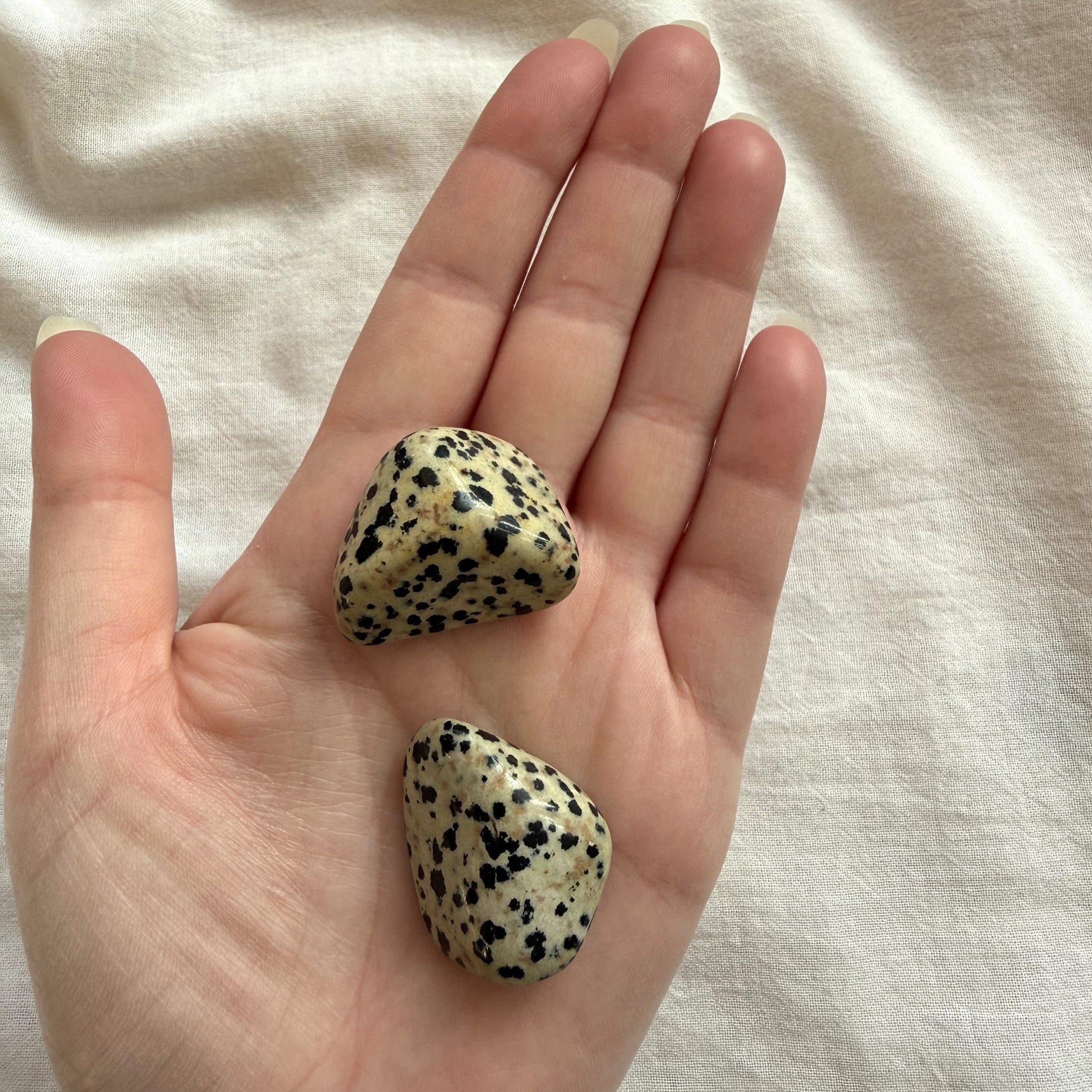 In der Steinlehre gilt Dalmatiner Jaspis als schützender und ausgleichender Edelstein. Er hilft dabei, negative Gedankenmuster, Grübeleien und emotionale Blockaden sanft zu lösen. Seine Energie fördert Lebensfreude, Spontanität und Vertrauen, während er gleichzeitig Erdung und Optimismus stärkt. Die schwarze Musterung im Stein wird traditionell mit Schutz und Abgrenzung verbunden, die helle Grundfarbe mit Klarheit, Offenheit und Leichtigkeit. Dalmatiner Jaspis unterstützt dabei, Vertrauen ins Leben zu entwickeln, ein harmonisches Gleichgewicht zu fördern und größere Vorhaben nochmals zu überdenken und besonnen zu handeln. Der Schutzstein wirkt besonders auf das Wurzelchakra.