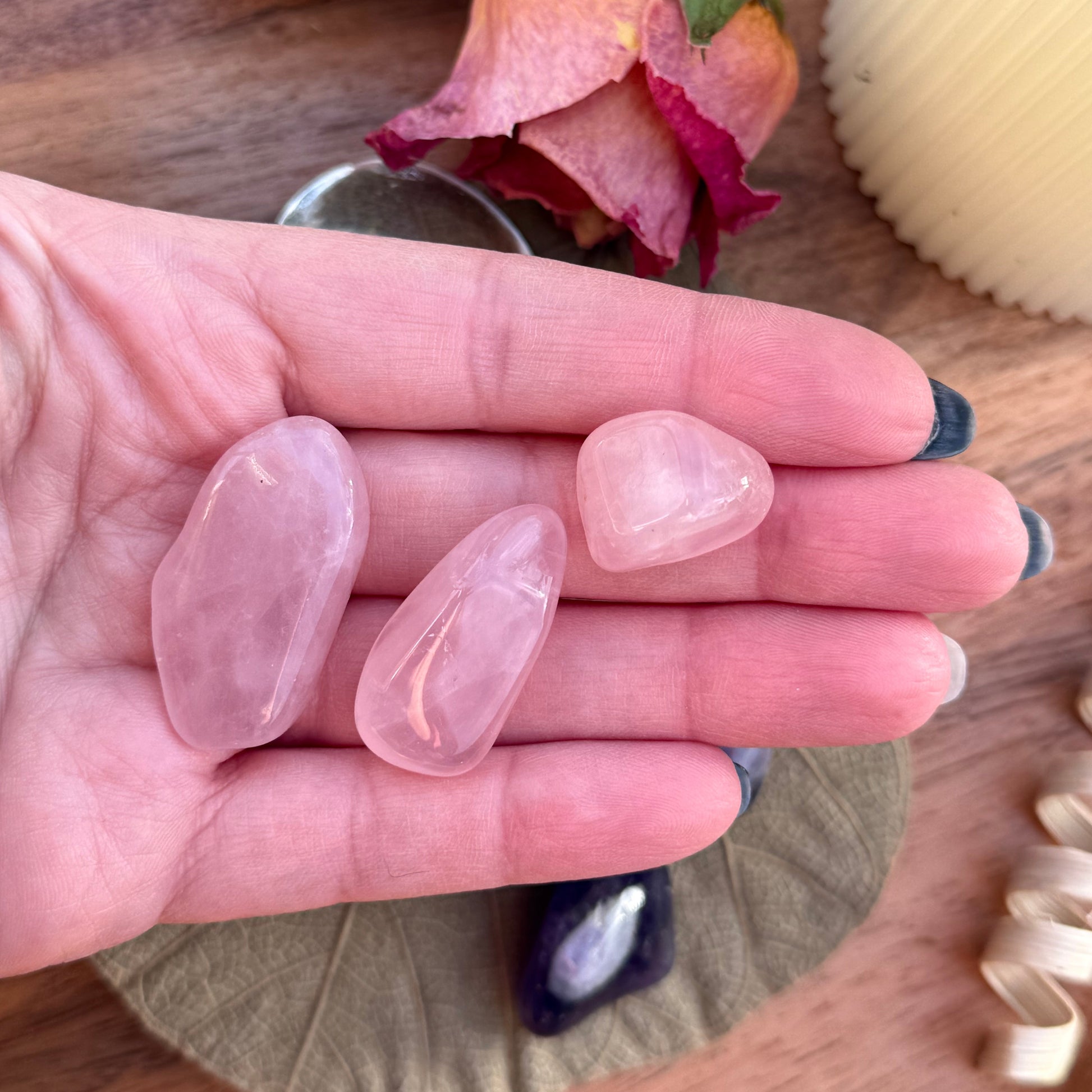 • 3 × Rosenquarz (Trommelstein, Größe S, ca. 2-3 cm)