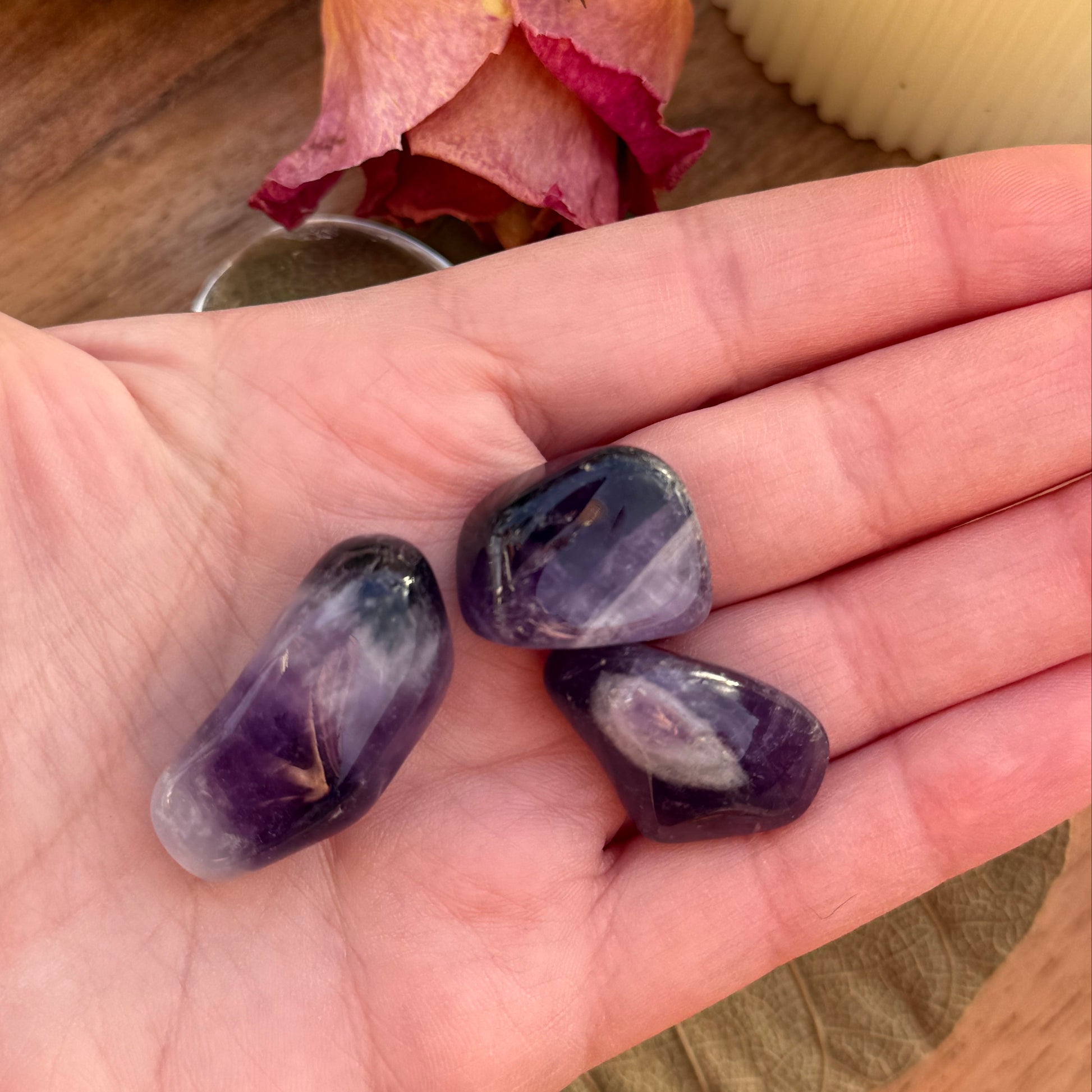 • 3 × Amethyst (Trommelstein, Größe S, ca. 2-3 cm)