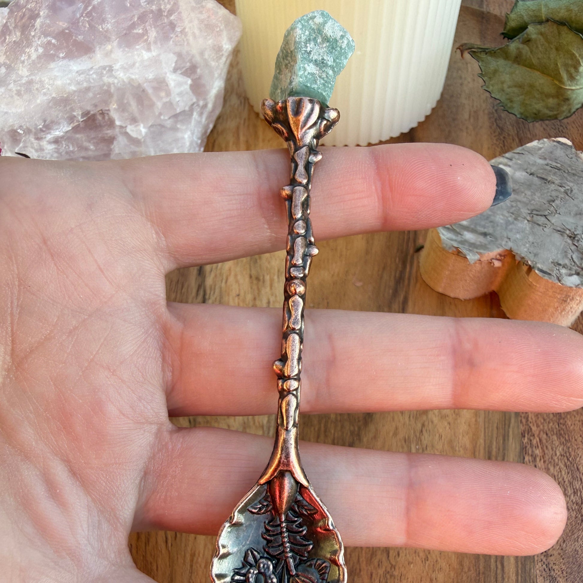 Dieses Edelstein Löffelset besteht aus sieben Kristall-Hexenlöffeln in bronzefarbener Optik und verbindet die Kraft echter Edelsteine mit einem mystischen, rituellen Design. Jeder Löffel ist mit einem Kraftstein versehen, der seine eigene Schwingung und unterstützende Wirkung mitbringt und die energetische Arbeit bewusst begleitet.