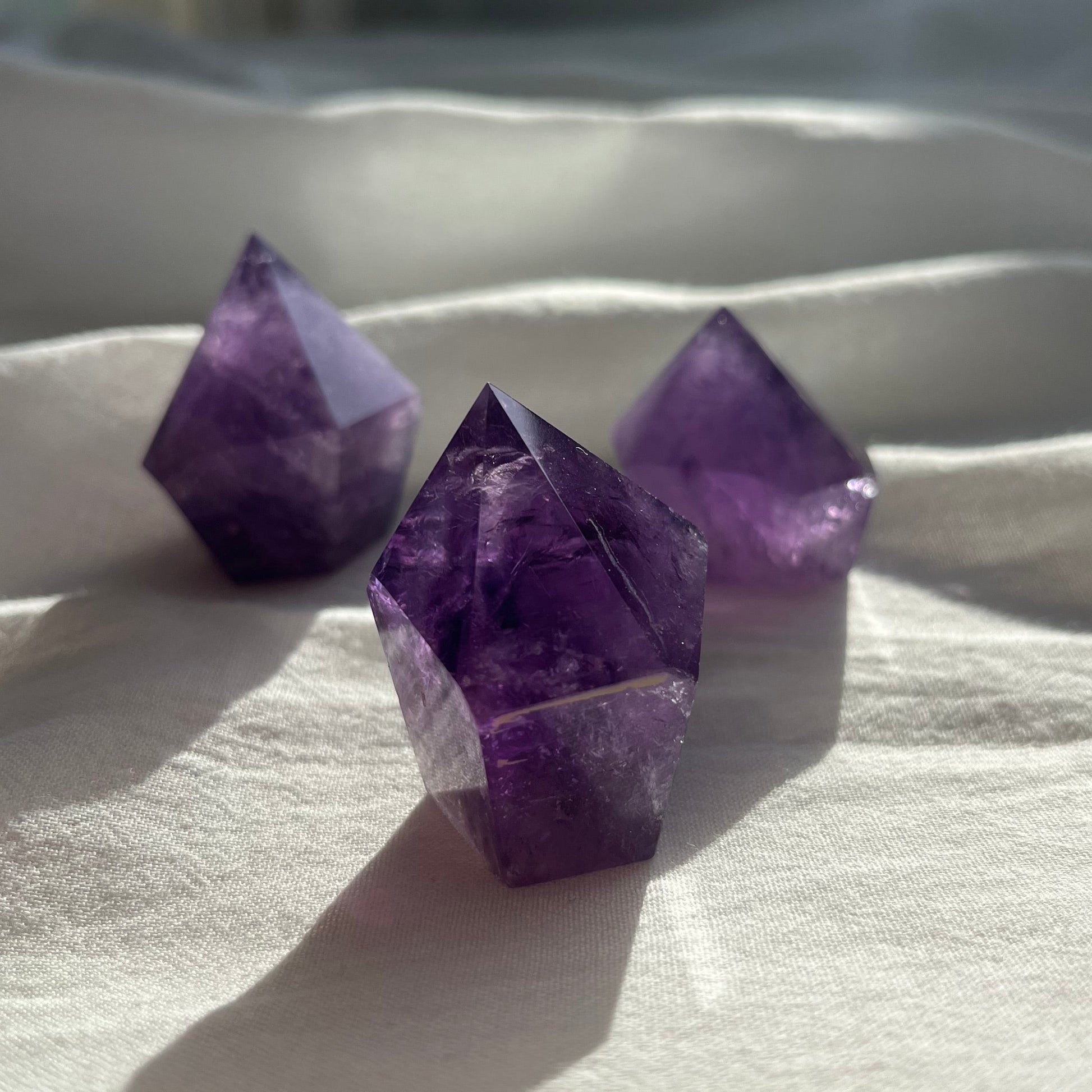 Amethyst Spitzen gelten als kraftvolle Begleiter für Ruhe, Klarheit und spirituelles Bewusstsein. Der Amethyst zählt zu den beliebtesten und stärksten Edelsteinen für energetische Reinigung, Schutz und intuitive Wahrnehmung. Als vielseitiger Schutzstein eignet er sich besonders für Meditation, Rituale und Energiearbeit und unterstützt dabei, Gedanken zu ordnen, Stress zu lösen und unerwünschte Energien fernzuhalten.