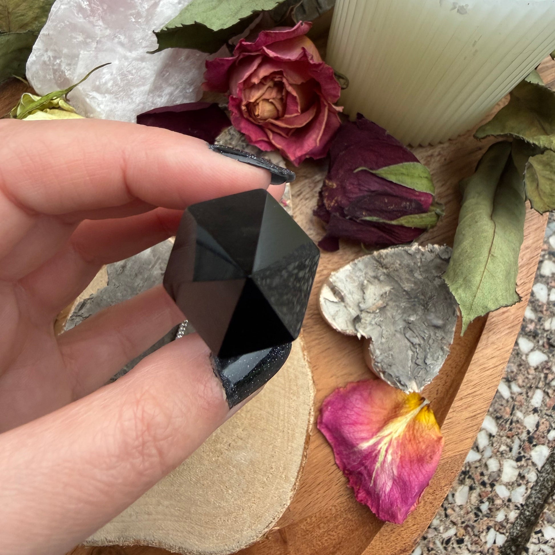 Schwarzer Obsidian zählt zu den kraftvollsten Schutzsteinen auf körperlicher, psychischer und spiritueller Ebene. In Form einer polierten Spitze bündelt er seine Energie gezielt nach oben und unterstützt starke Erdung, Schutz und innere Klarheit. Schutzstein hilft dabei, Blockaden zu lösen, negative Energien abzuwehren und emotionalen Ballast loszulassen. Gleichzeitig stärkt er Fokus, innere Ruhe und Urvertrauen. Er wirkt besonders auf das Wurzelchakra und eignet sich ideal für Schutzarbeit, Rituale und Transformationsprozesse.