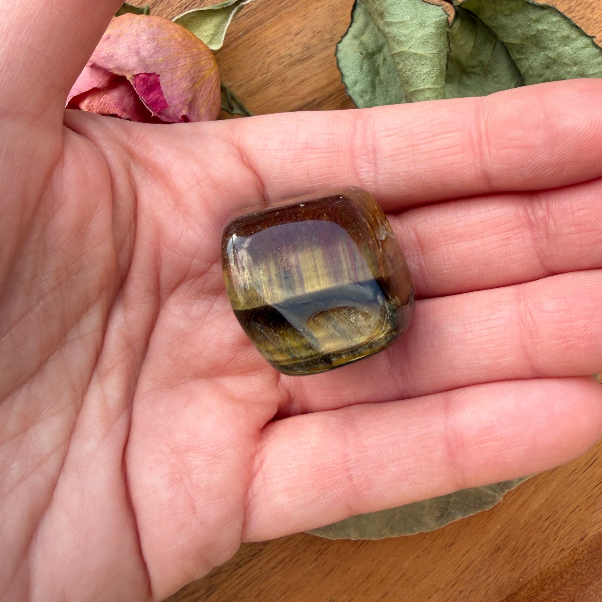 Tigerauge ist ein kraftvoller Schutzstein, der seit Jahrhunderten für innere Stärke, Standfestigkeit, Selbstvertrauen und Wahrnehmung steht. Er unterstützt dabei, entschlossen zu handeln, Mut zu fassen, Entscheidungen zu treffen und in schwierigen Situationen einen klaren Kopf zu behalten. Zudem begleitet er dabei, den eigenen Weg mit Zuversicht zu gehen.