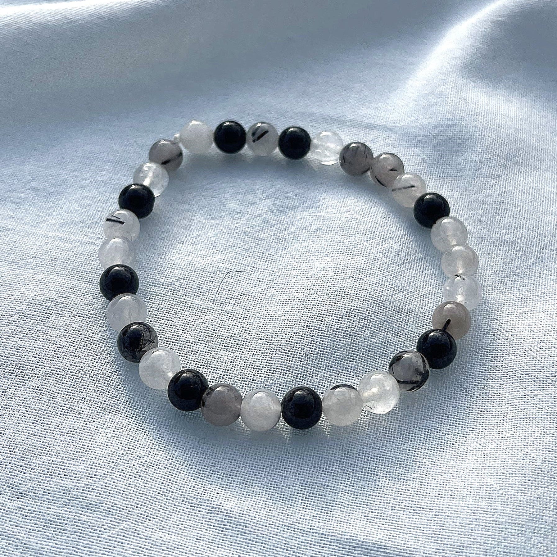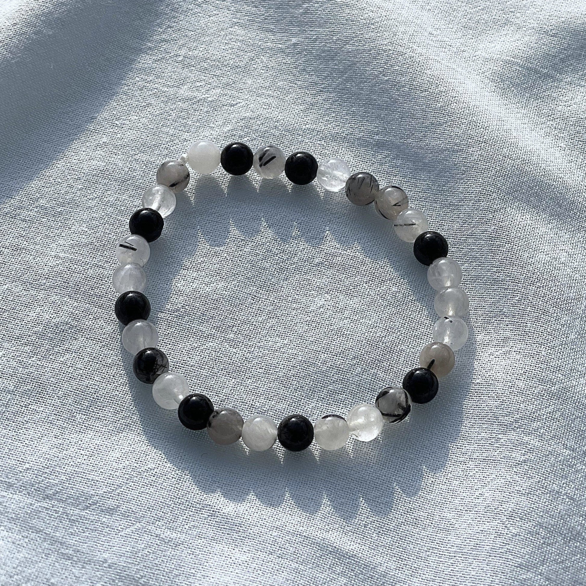In der Steinlehre gilt Turmalinquarz, auch Schörlquarz genannt, als besonders wirkungsvoller Schutzstein, da er die klärenden Eigenschaften des Bergkristalls mit der schützenden Energie des schwarzen Turmalins verbindet. Er unterstützt dabei, negative und fremde Energien zu erkennen und abzuwehren und das eigene Energiefeld zu stabilisieren. Als Armband getragen wirkt seine Energie kontinuierlich im Alltag und hilft besonders in stressigen Situationen oder bei Reizüberflutung, zentriert und geistig klar zu bleiben. Turmalinquarz fördert innere Ruhe, bewusste Abgrenzung und Bewusstsein. Er wirkt besonders auf das Stirnchakra (Drittes Auge) und das Wurzelchakra.