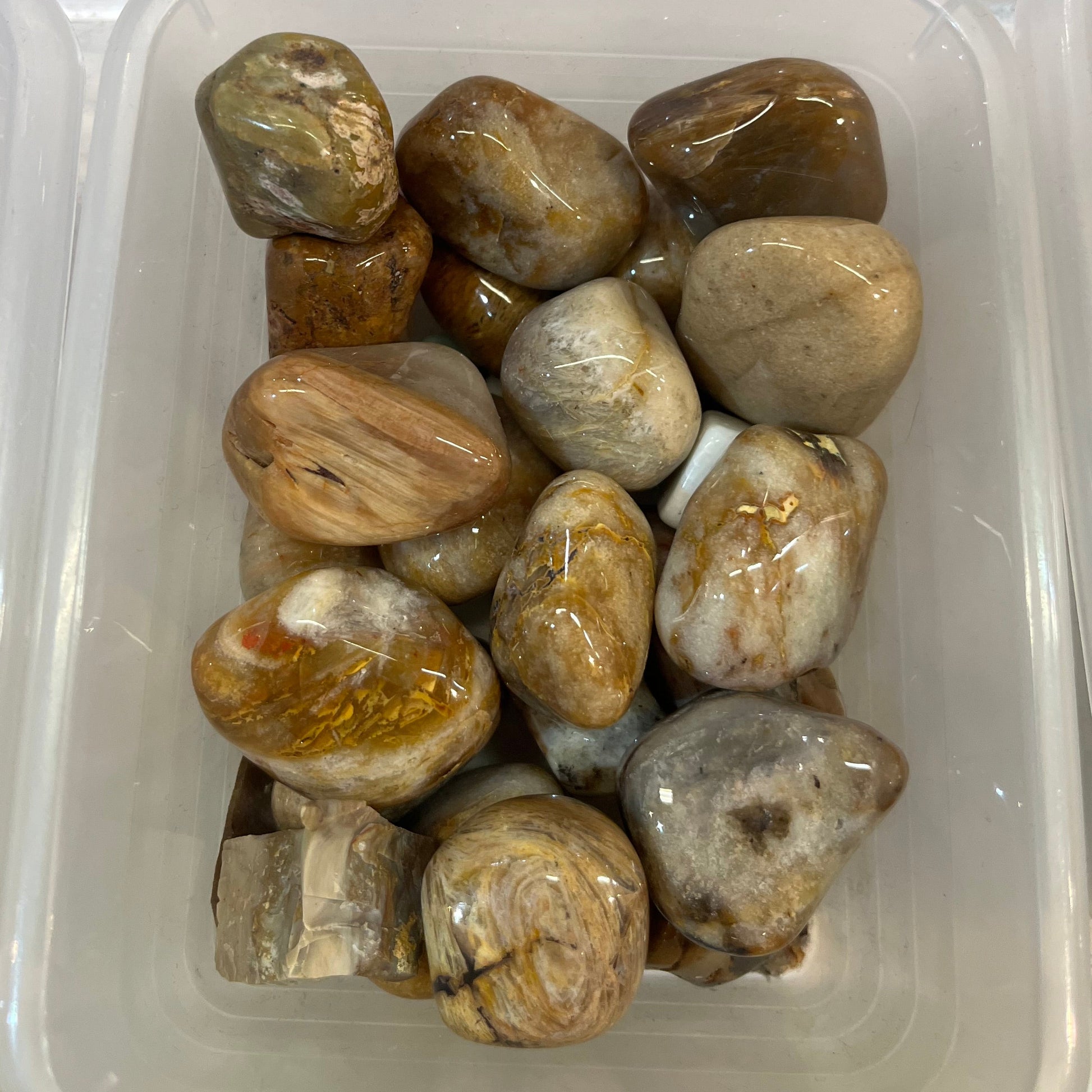 In der Steinlehre gilt versteinertes Holz als kraftvoller Erdungs- und Stabilitätsstein. Es unterstützt dabei, innere Unruhe zu sänftigen, Stress abzubauen, Ärger zu beseitigen und das Gefühl von Halt und Sicherheit zu stärken. Zudem gilt der Trommelstein aus versteinertem Holz als Sorgenstein, der dafür sorgt, dass Situationen friedlich gelöst werden können und Harmonie herrscht. Seine Energie wirkt langsam und tiefgehend und hilft, sich bewusst mit der eigenen Kraft zu verbinden. Versteinertes Holz unterstützt ein ruhiges, beständiges Voranschreiten im Leben - besonders in Phasen von Wandel oder Unsicherheit. Es wirkt besonders auf das Wurzelchakra, kann aber zugleich den Energiefluss im Herzchakra fördern.